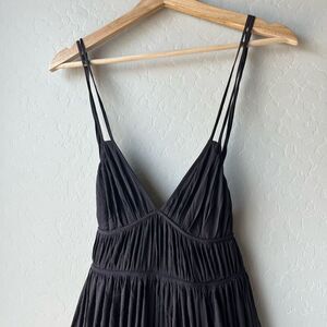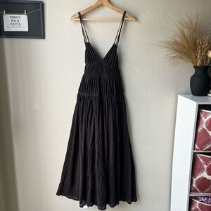 Constructed in tiers of light, breathable mesh, this ankle-grazing walnut brown maxi dress from Rebecca Taylor features a sensual deep V-neck and open back with bow tie. Adjustable straps. Pleated details. Dark brown color. Size 00.