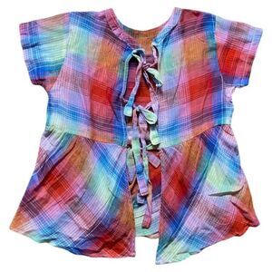 NEW Rebellion Rainbow Plaid Short Sleeve Shirt sz S