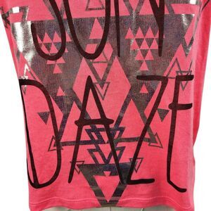NEW Rebellious One Medium Tee Sun Daze Hot Pink Graphic Shiny Silver Triangle