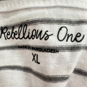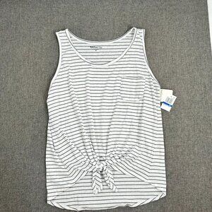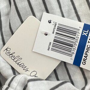NEW! Rebellious One Tank Top Tie Front Stripped White Grey XL Scoop Neck Cotton