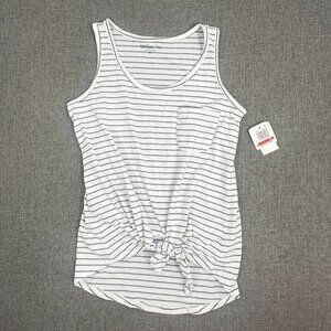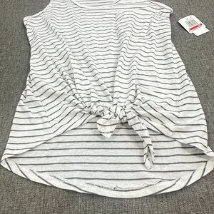 NEW! Rebellious One Tank Top Tie Front Stripped White Grey XS Scoop Neck Cotton