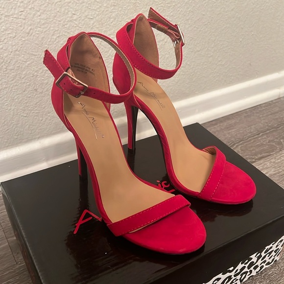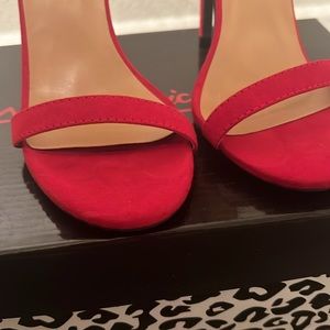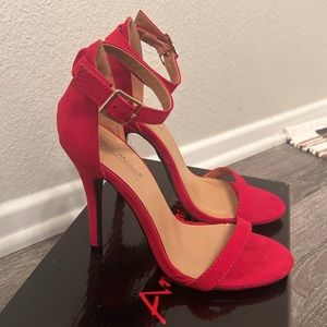 Red Stiletto Heels only worn in store - tan sole part is coming up a bit by the toes just needs some tape or glue
