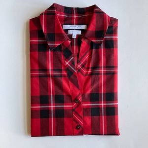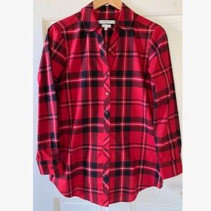 NEW Red Plaid Shirt Tunic Size 6 Foxcroft Holiday Tartan Wrinkle-Free Shaped Fit