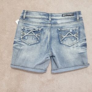 NEW Red Rivet Denim Shorts Cotten Stretch Blend Distressed Woman's Size 5