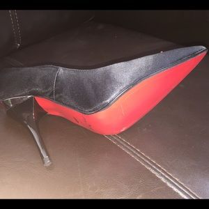 Features: Red Rose design in front of heel, satin shoe with silver plated detail on heel, 3 inch heel, Red bottom sole,