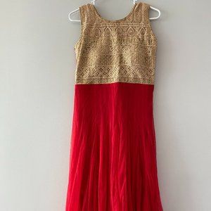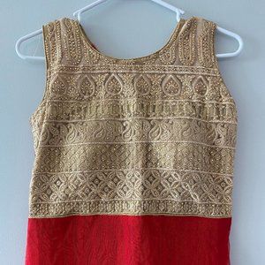NEW Red/Gold Anarkali Dress - salwar, sleeveless, ready to ship, S/M
