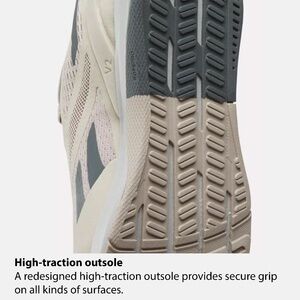 A redesigned high-traction outsole provides secure grip on all kinds of surfaces.