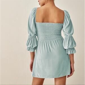 NEW Reformation Albi Long Sleeve Velvet Mini Dress in Turquoise Size XS