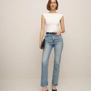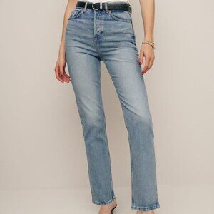 NEW Reformation Cynthia Stretch High Rise Straight Jeans in Fortuna