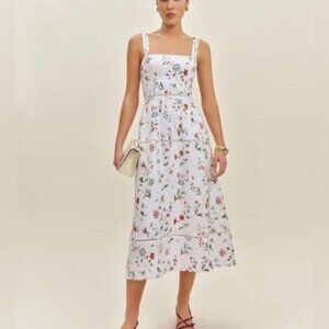 NEW Reformation Everett Linen Midi Dress Corsini White Multi Floral | US 2 UK 6