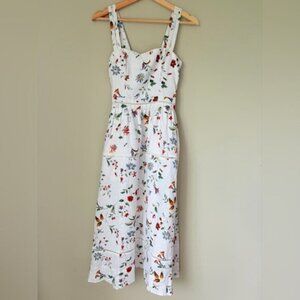 NEW Reformation Everett Linen Midi Dress Corsini White Multi Floral | US 6 UK 10