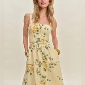 NEW Reformation Everett Linen Midi Dress Radiance Yellow Floral | US 2 UK 6