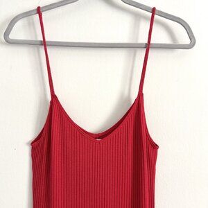 Brand New Reformation Shell Dress, women’s size large! Bright cherry red, ribbed, fixed spaghetti straps, midi length, soft and stretchy material.