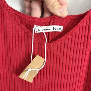 NEW Reformation Jeans Cherry Red Midi Shell Dress Women’s Size Large Ribbed