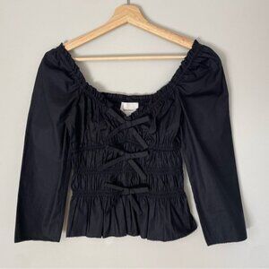 NEW Reformation Lauryn Elegant Cotton Black Top Bows | size 2