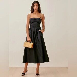 NEW Reformation Lissa Cotton Midi Dress Black Removable Strap | size 4