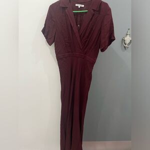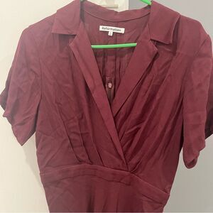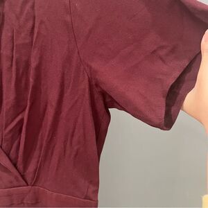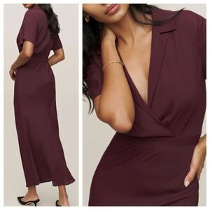NEW Reformation Midi Dress Burgundy Red Short Sleeve V-neck Shirt Slip size S