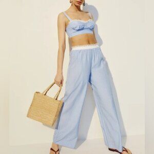 NEW Reformation Pippa Two Piece Set Top Pants Sky Blue Stripe | US 0 UK 4