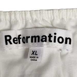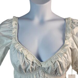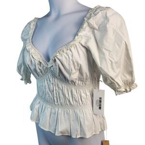 NEW Reformation X-Large White Cotton Blouse Sweetheart Neck Peplum Shirred