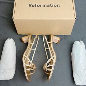 Brand new in box, Reformation Sally Bow Heels in size 7. Feminine and elegant design featuring a delicate bow detail and classic high-heel silhouette. Perfect for weddings, date nights, or special occasions. Comfortable fit with refined craftsmanship, making them a versatile wardrobe staple for dressy looks.
