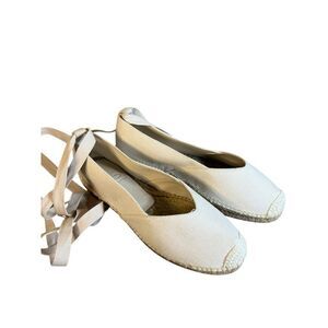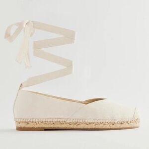 NEW Reformation Lace-Up Espadrilles Size 8 | Cream Canvas Flats Summer Shoes