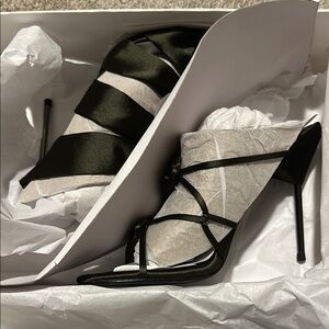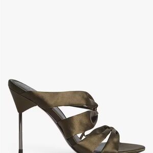 NEW Reiss Satin Pin Heel Mules in Khaki