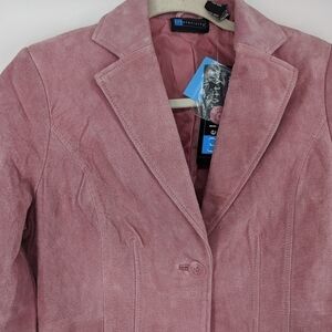 NEW Relativity PM Petite Medium Pink Salmon Washable Suede Leather Blazer Jacket