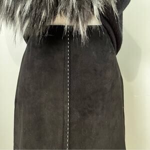 New without tags Gorgeous Vintage Rem Garson Luxury A-line Midi Skirt in Black Suede with White Contrast Stitching Down the Center of the Front and Back. Lined. Y2K. Women's Size 6.