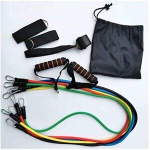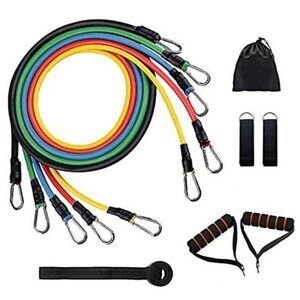 NEW Resistance Training Bands 11 Piece Set Home Workout Physical Therapy Yoga Pilates Bodybuilding Exercise Fitness with Door Anchor Handles Ankle Straps