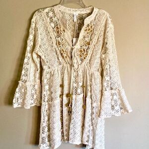 Tags: boho chic lace shell embellishment spring summer festival concert swim beach pool cover-up travel vacation resortwear luxe