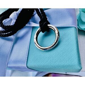 🖤 NEW Retired Tiffany & Co Silk Cord Silver Round Clasp Necklace, 30 inches