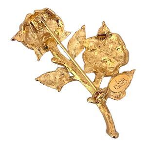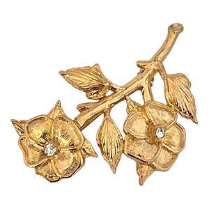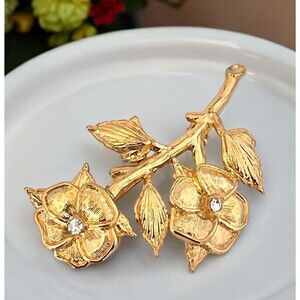 This stunning Joan Rivers pin is signed. It is gold toned and features a floral design with crystal accents.