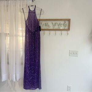 NEW Retrofete Clarisse Sequin Halter Maxi Dress Gown Purple
