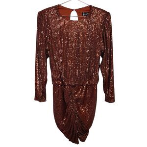 NEW Retrofete Flynn Long Sleeve Sequin Mini Dress Bronze Size Medium