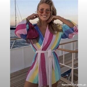 NEW! Retrofete Gabrielle Sequin Robe Mini Dress Unicorn Rainbow Stripe