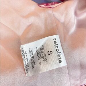 NEW Retrofete Siena Silk Crop Top Blouse in Fuchsia Pink Geo Print Tie Front S