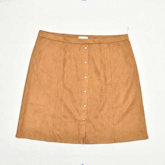 NEW Retrology Women's A Line Button Faux Suede Skirt Polyester Brown Size 2X