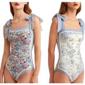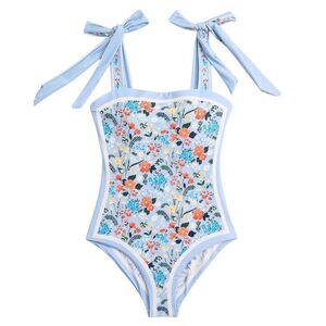 New! *REVERSIBLE* One Piece Swimsuit in gorgeous Floral Prints in baby blue and white. Flattering Tummy Control w/ Tie Shoulders for every body! The high-quality fabric makes the swimsuit very elastic, comfortable, quick-drying and breathable. Retro and fashionable, simple and elegant swimsuit. 85% Polyester, 15% Spandex. Women’s size large.