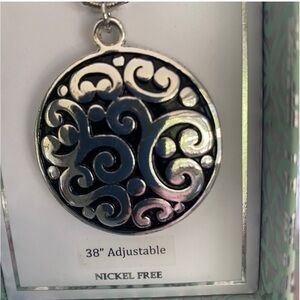 NEW ! Reversible Jewelry 38” Long Necklace Adjustable Scroll Side Hammered Side