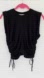 - Ruched drawstring side accents, rolled sleeves with button, cropped, ribbed neck, unlined