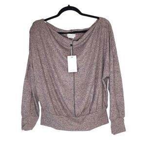 SOOOO Soft! Is brushed knit so has a bit of a lightweight sweater texture. Very beautiful and comfy! Can be dressed up or down and worn on or off shoulder. Size XS. New with tags.