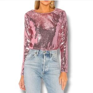 NEW Revolve Majorelle Christiana Sequin Longsleeve Top in Disco Pink Size XS