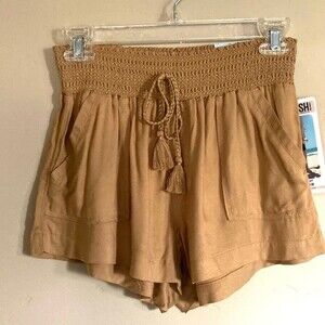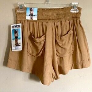 NEW Rewash Junior Smocked Boho Festival Beach Shorts Brown Size L