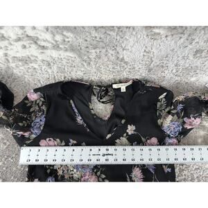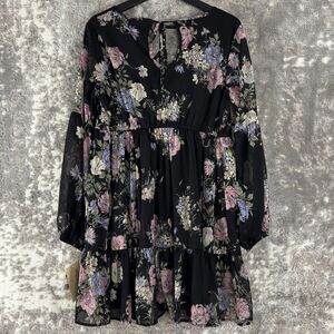 NEW Rewind Size M Dark Floral Boho Keyhole Mini Summer Dress Black Long Sleeve