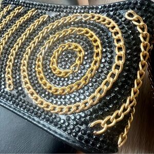 Features: Slip On, Black Rhinestones, Gold Chain In a Circle Design, Padded Footbed For Maximum Comfort, Can Be Worn Casually Or Dressed Up, Square Toe