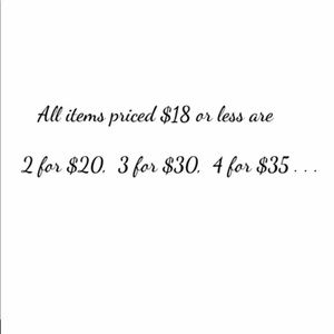 All items priced $18 or less are 2/$20, 3/$30, 4/$35 . . the more you buy the more you save 200+ sale items available