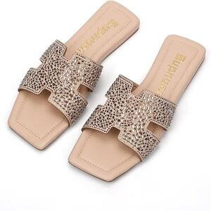 🤍 Rhinestone Flat Sandals 🤍