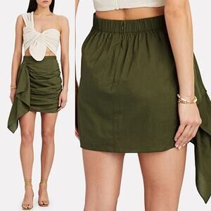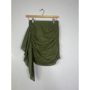 Rhode Hannah Ruched Asymmetrical Drape Cotton Mini Skirt Women's Green. New with tag!