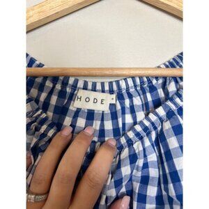 NEW Rhode Luciana Puff Sleeves Self Tie Gingham Plaid Blouse Top Blue. New without tag!