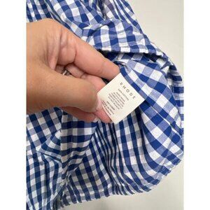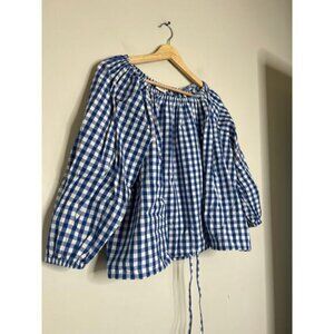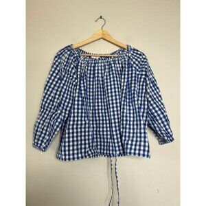 NEW Rhode Luciana Puff Sleeves Self Tie Gingham Plaid Blouse Top Blue Size: S